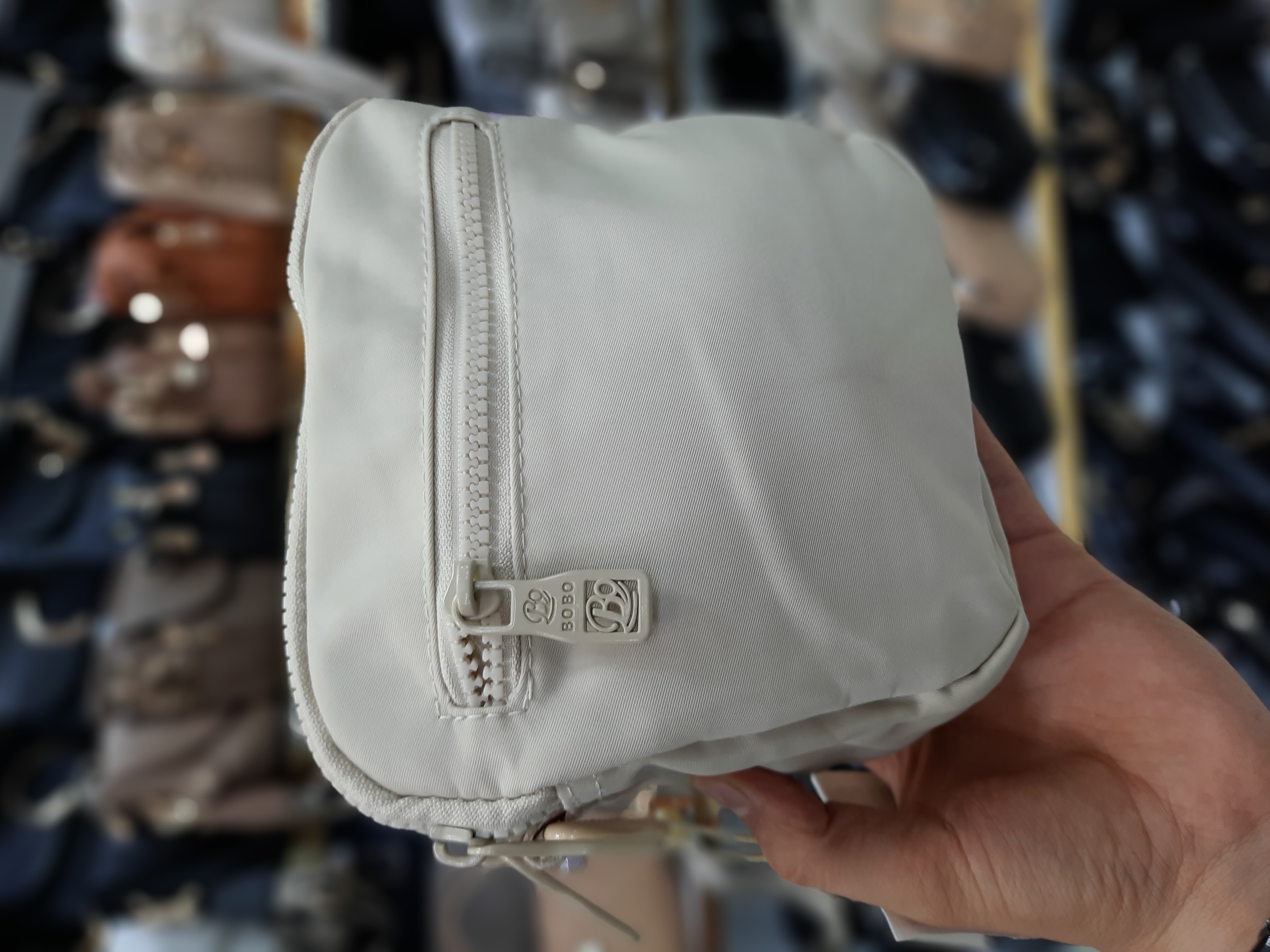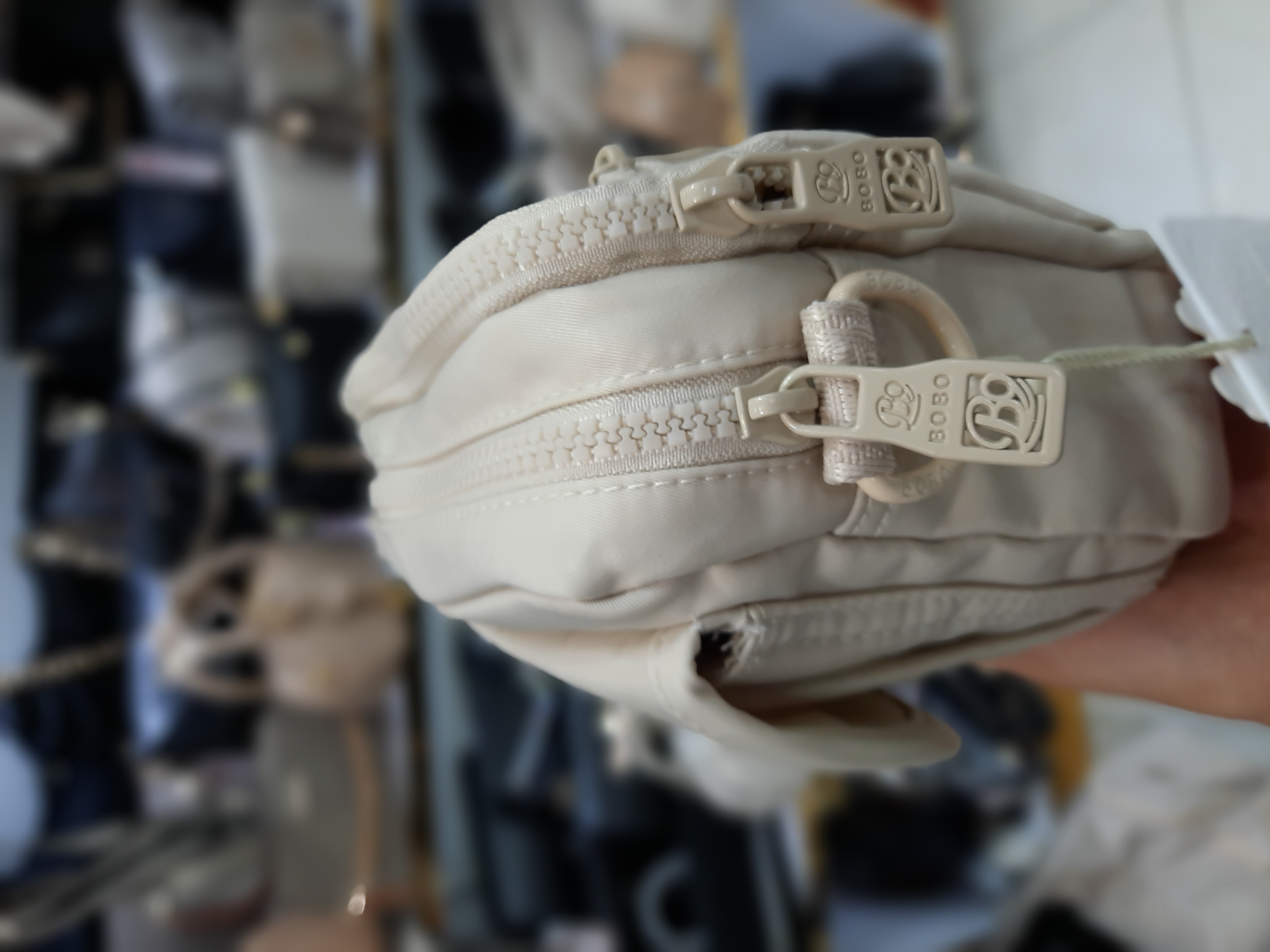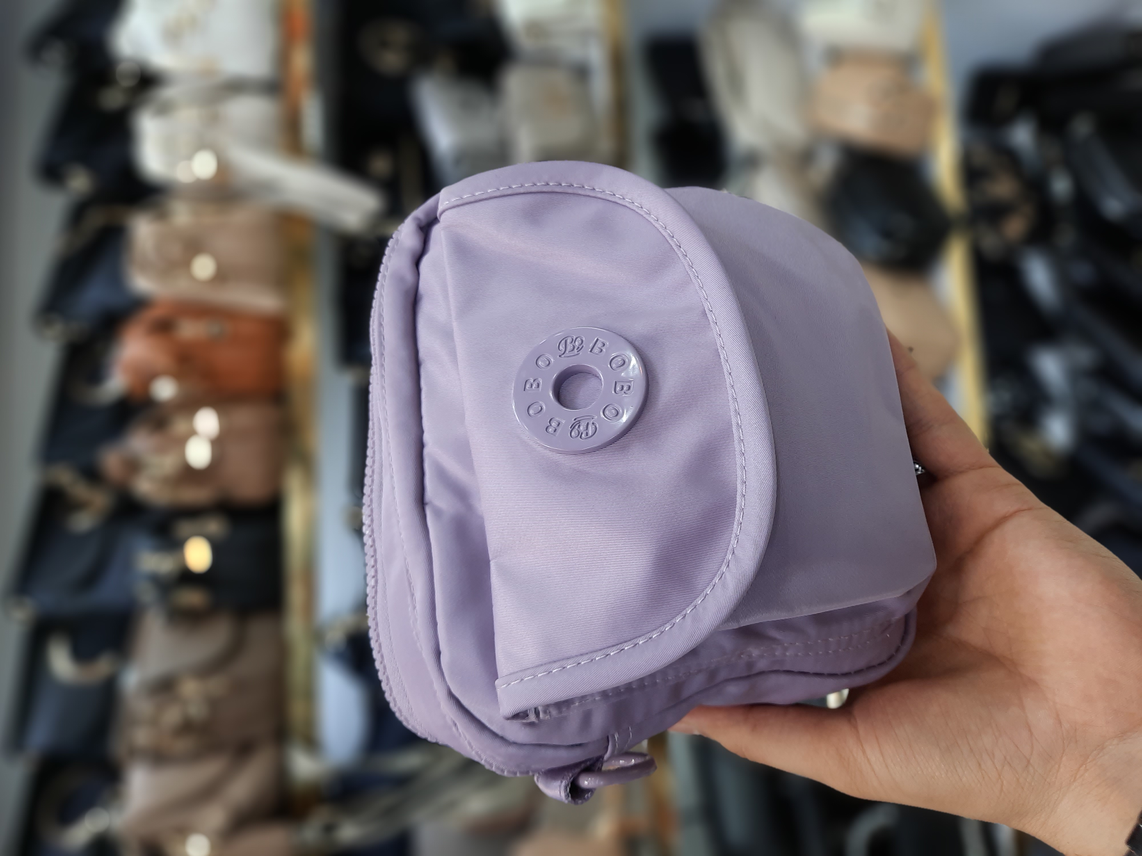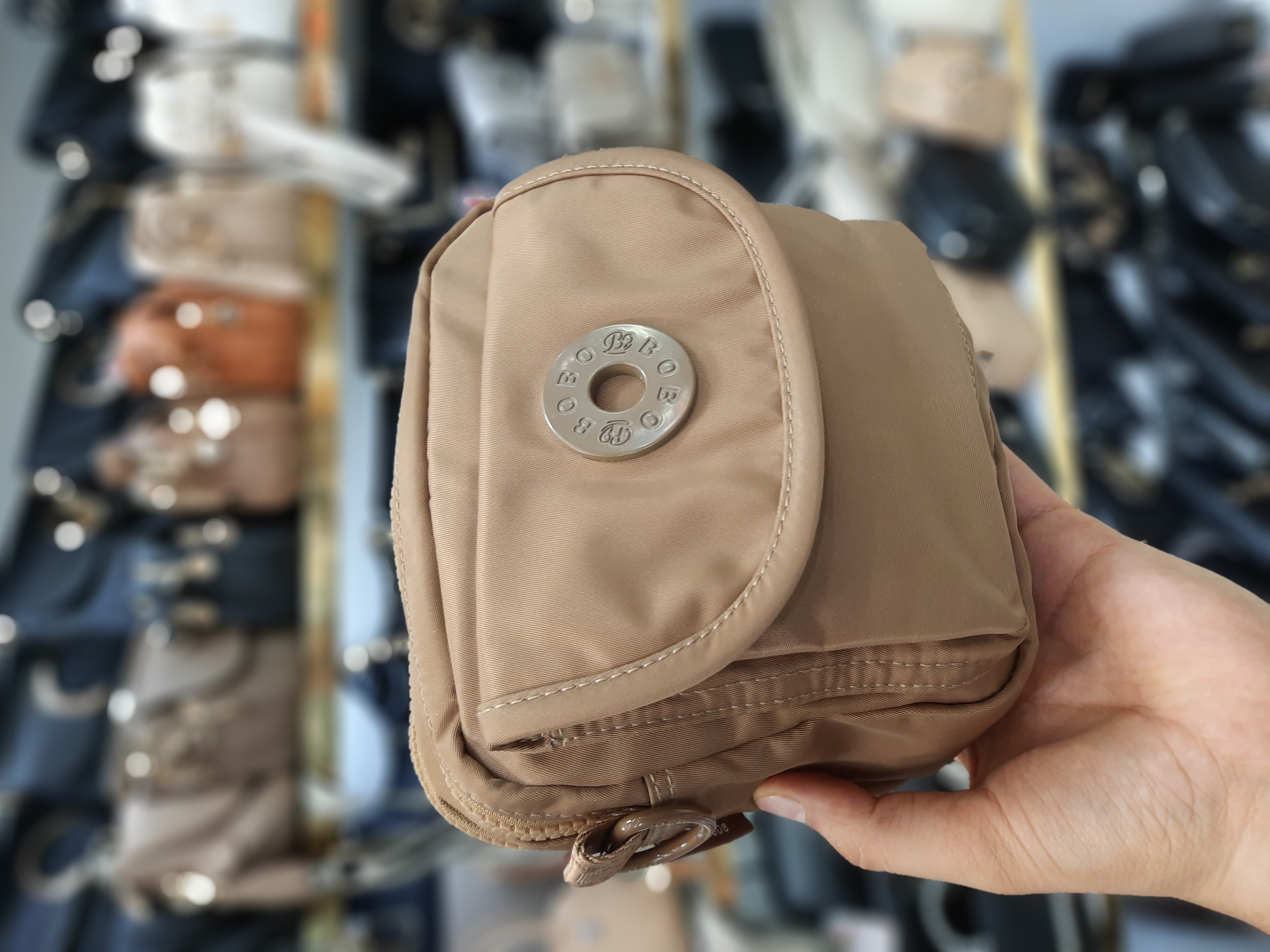 جنس برزنت درجه یک جلوی کار جیب با دکمه مگنتی (آهنربایی) ضدآب قابل شستشو دارای بند قابل تنظیم حک برند بوبو روی سرزیپ ها و آستر داخلی ابعاد 18*6*19