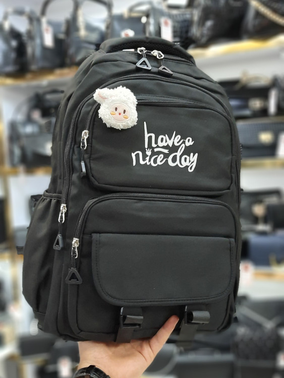 جنس برزنت درجه یک ضدآب و قابل شستشو سرزیپ های فانتزی بسیار سبک وزن حدود ۵۰۰ گرم دارای بند تراولی دسته چمدانی ابعاد 32*20*47