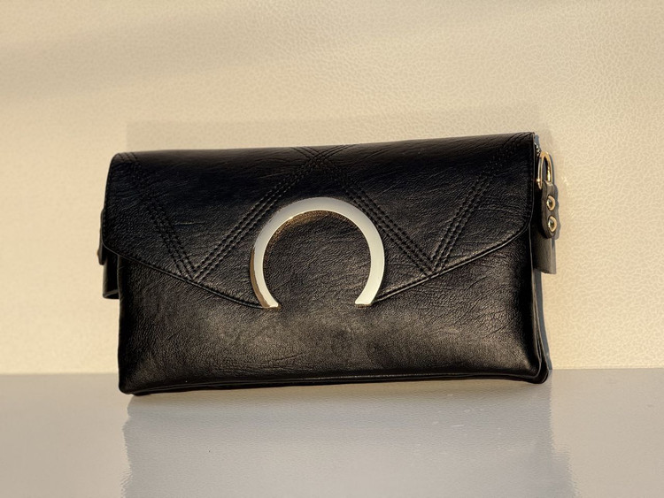 کیف زنانه چرم شسته طرح نعل اسبی نقره ای